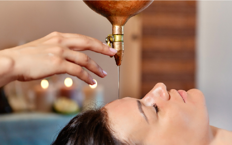 In this Ayurvedic therapy, the person being treated lies on their back. Furthermore, heat in the next step, healing oil is poured onto the forehead from a certain height. Oil then flows around the forehead and down into the scalp, which is then gently massaged into the skin by the practitioner.
